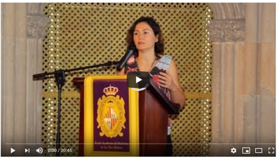 Sesión divulgativa celebrada en la sede de la Reial Acadèmia de Medicina de les Illes Balears conjuntamente con la AECC de les Illes Balears el 20 de septiembre de 2018 a cargo de la Sra. María Teresa Colomar Ferrer dietista-nutricionista del Hospital Universitari Son Espases y vicepresidenta del Colegio Oficial de Dietistas-Nutricionistas de Illes Balears.